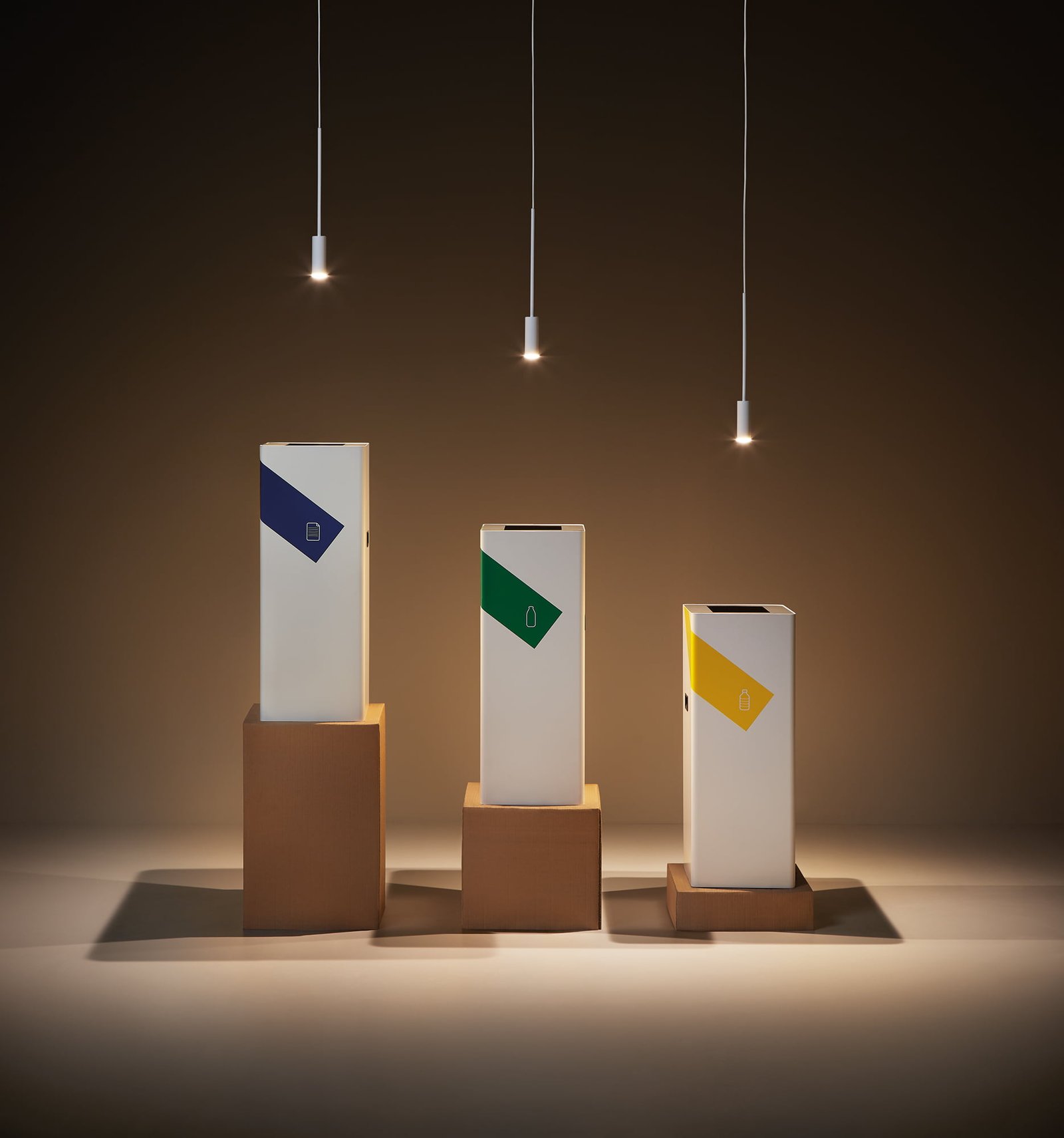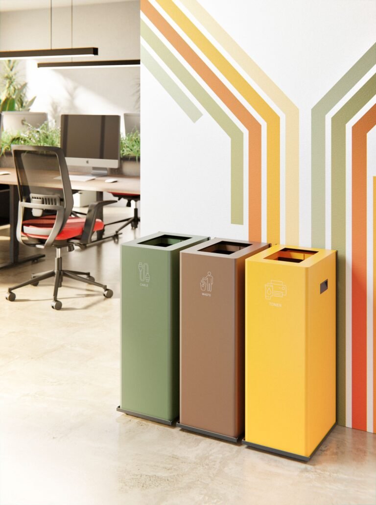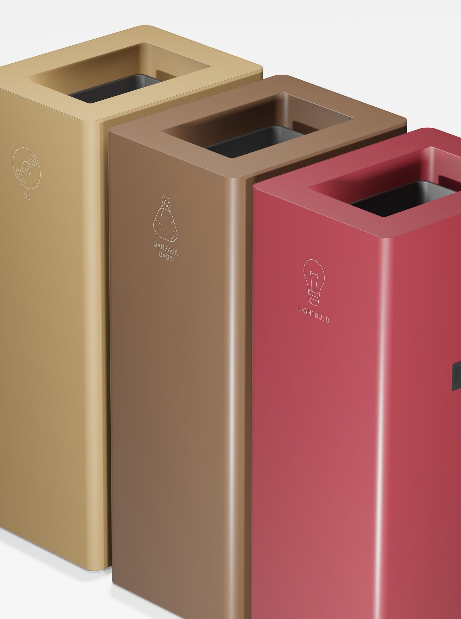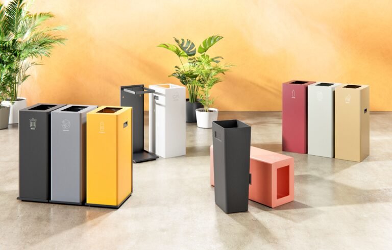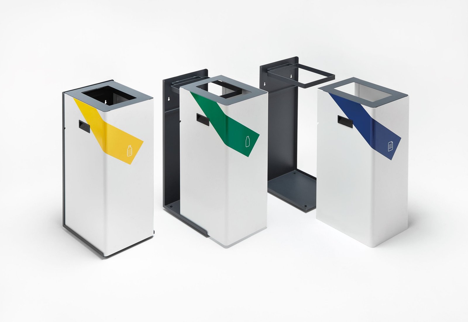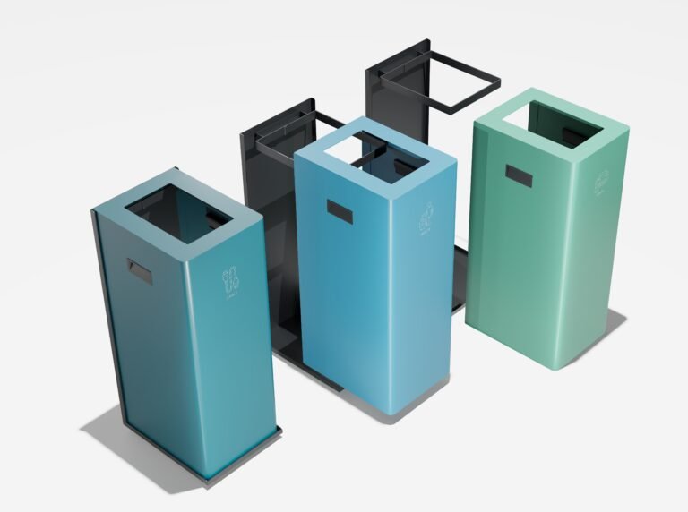 The simplest solution, of metal construction, allows the selection of the desired waste by means of color and pictogram.