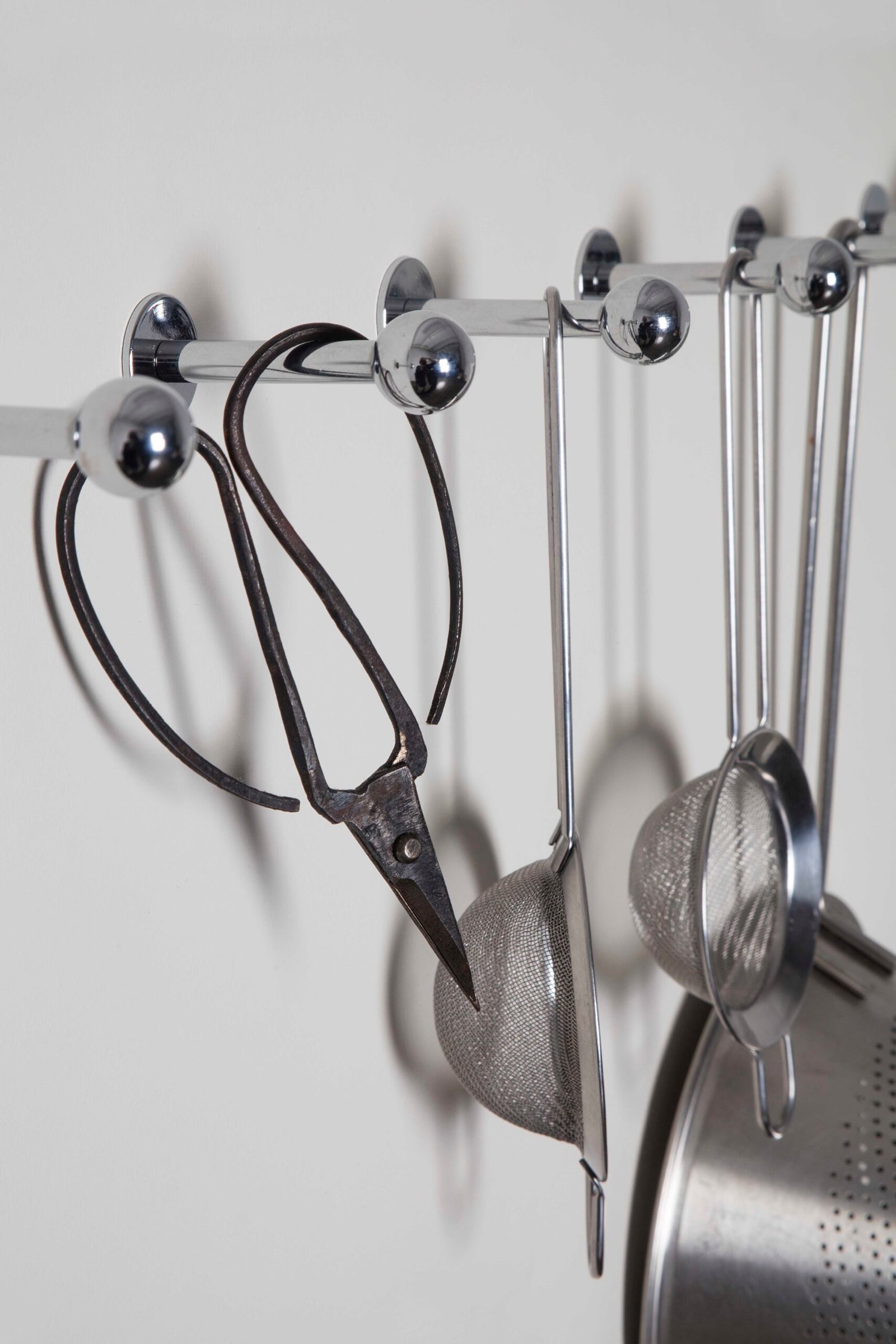 La composizione sferica degli appendiabiti cromati, disposti come stelle in una costellazione,