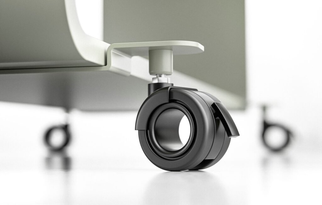 Pies metálicos Dotados de ruedas con freno.