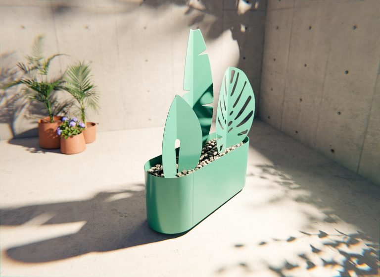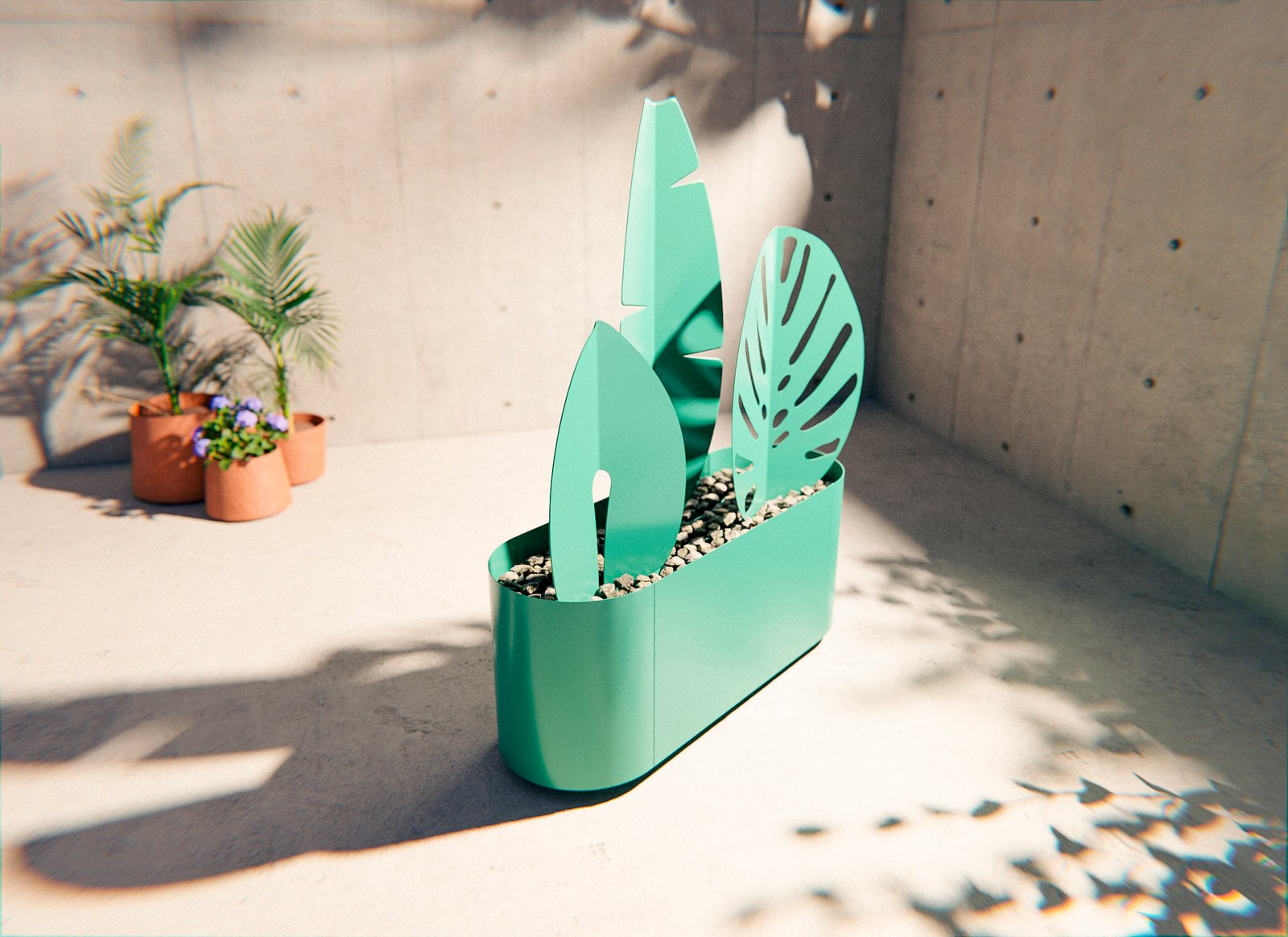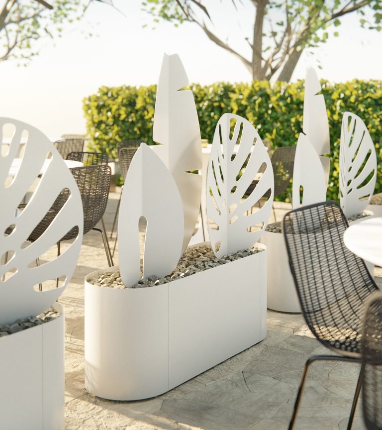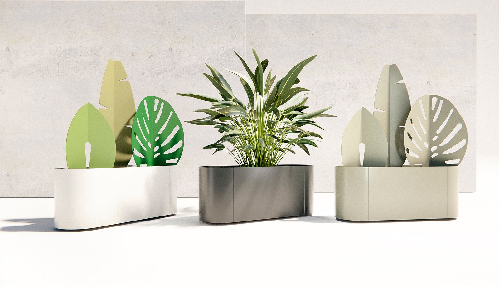 Este particular separador de espacios con forma de jardinera, permite ubicarse de manera simpática y divertida en cualquier espacio tanto interior como exterior.