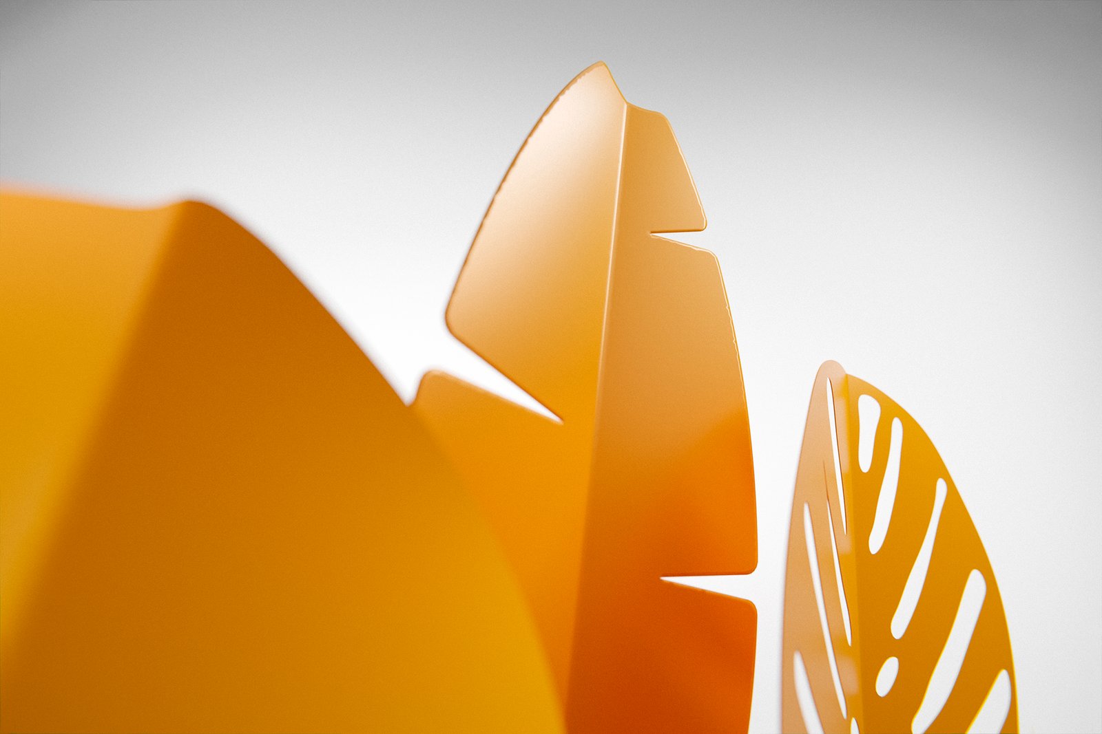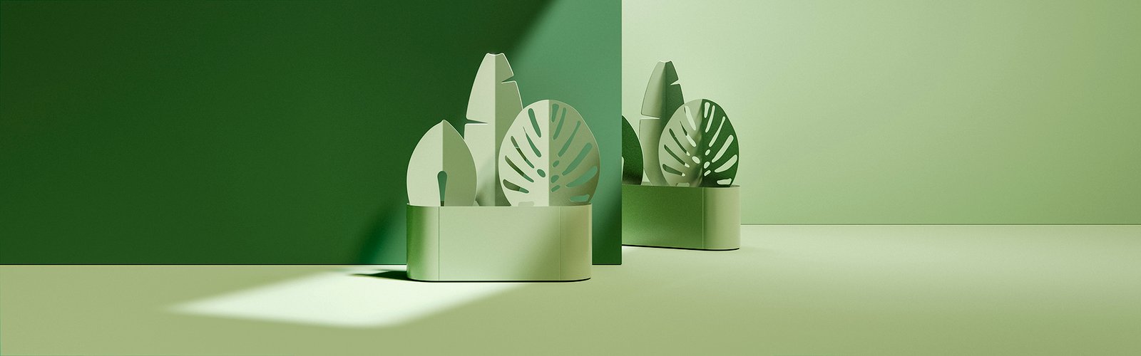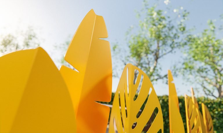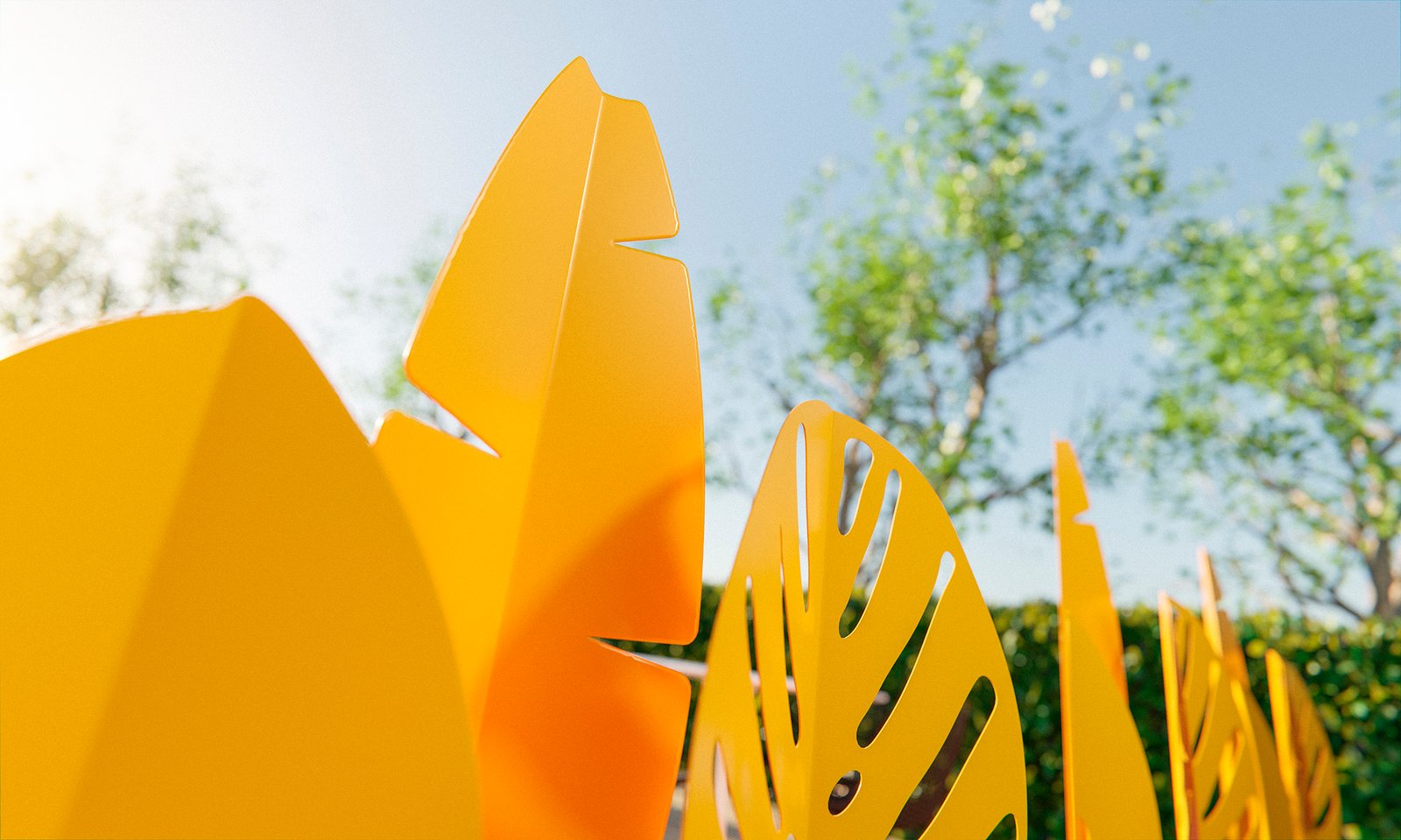 Puedes sembrar plantas naturales y artificiales o unas enormes hojas metálicas o de PET reciclado con propiedades fonoabsorventes.