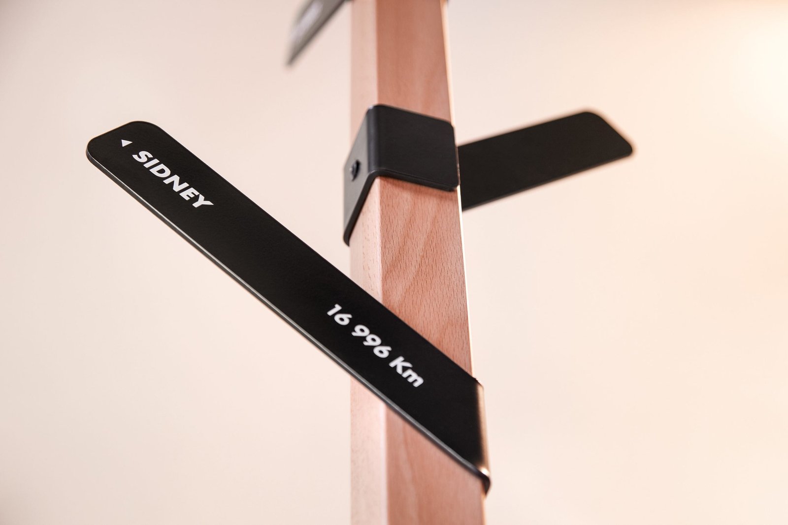 ¿Y si además de colgador es un indicador? En madera con cuatro perchas metálicas apuntando a cuatro sitios diferentes: La Luna, el Sol, Júpiter y Mercurio son los destinos preferidos del modelo estándar, pero puedes personalizarlos con lo que quieras. Es ideal en ambientes confort.